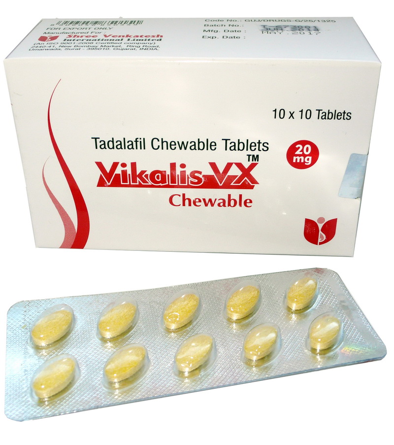 Vikalis VX Chewable 20mg is a drug that is used to treat erectile dysfunction (ED) in men. It contains Tadalafil as a major ingredient. Vikalis VX Chewable 20mg capsule has proven to improve erectile function in men suffering from mild, moderate or severe erectile dysfunction.