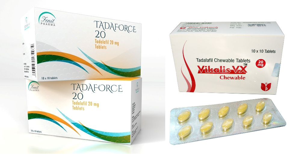 Vikalis VX Chewable 20mg and Tadaforce 20m, – these 2 high-quality products for potency problems can be found in the new Generic Cialis Pack. Both products have the same active ingredient (Tadalafil). Save some money with a special offer!Vikalis VX Chewable 20mg